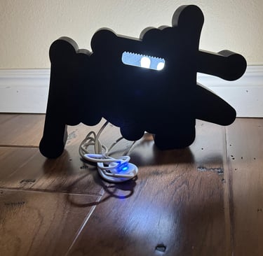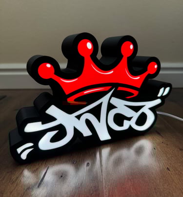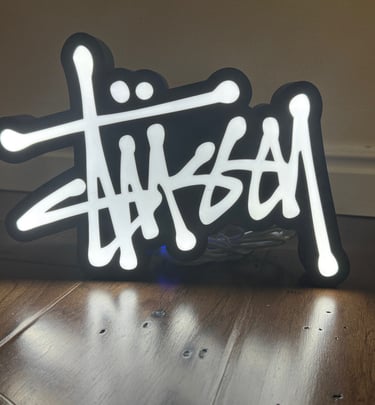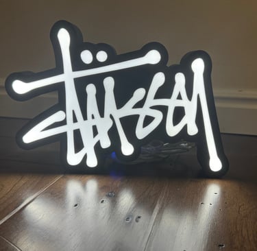 A light box is a container that lights up to showcase photos or artworks.